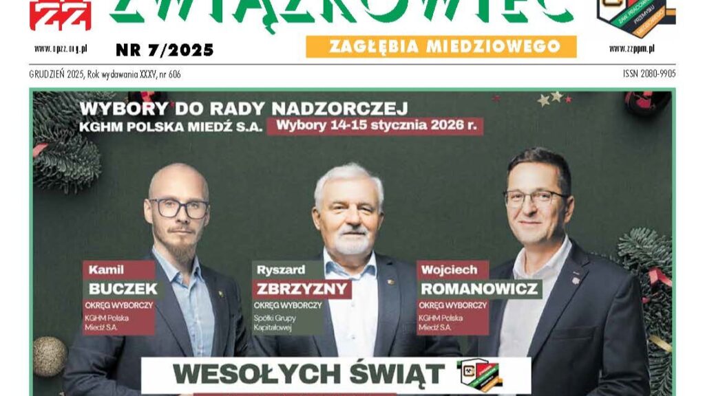 W najnowszym numerze „Związkowca” przedstawiamy kluczowe wydarzenia końcówki roku w KGHM i Grupie Kapitałowej: start kampanii wyborczej do Rady Nadzorczej, postępy w pracach nad Ponadzakładowym Układem Zbiorowym Pracy, porozumienie płacowe w Metraco oraz stanowisko ZZPPM wobec prób wprowadzania zasady „0,00% …