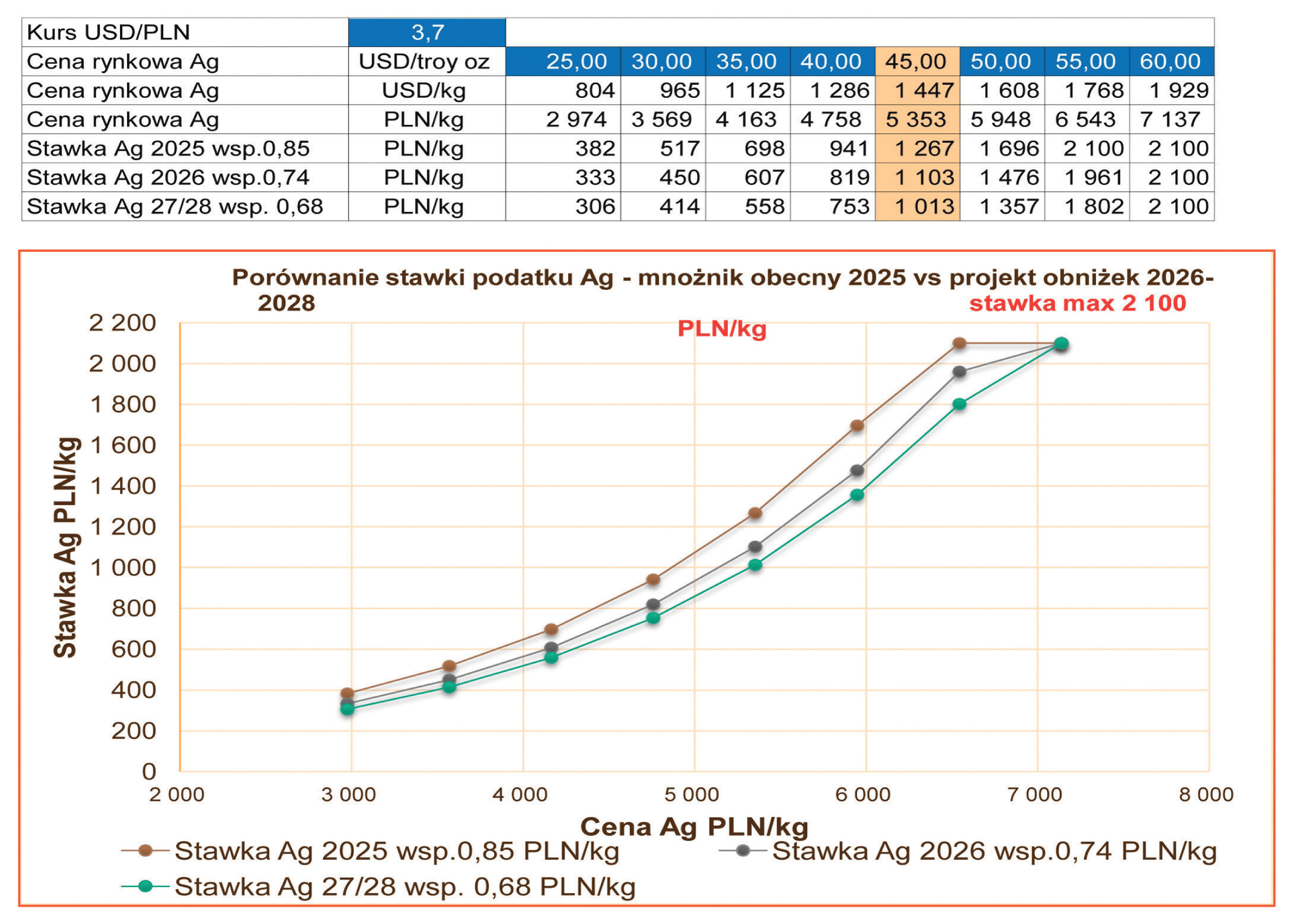 – około 200 zł na kilogram srebra (Ag) w koncentracie wg aktualnej ceny Ag i kursu dolara.